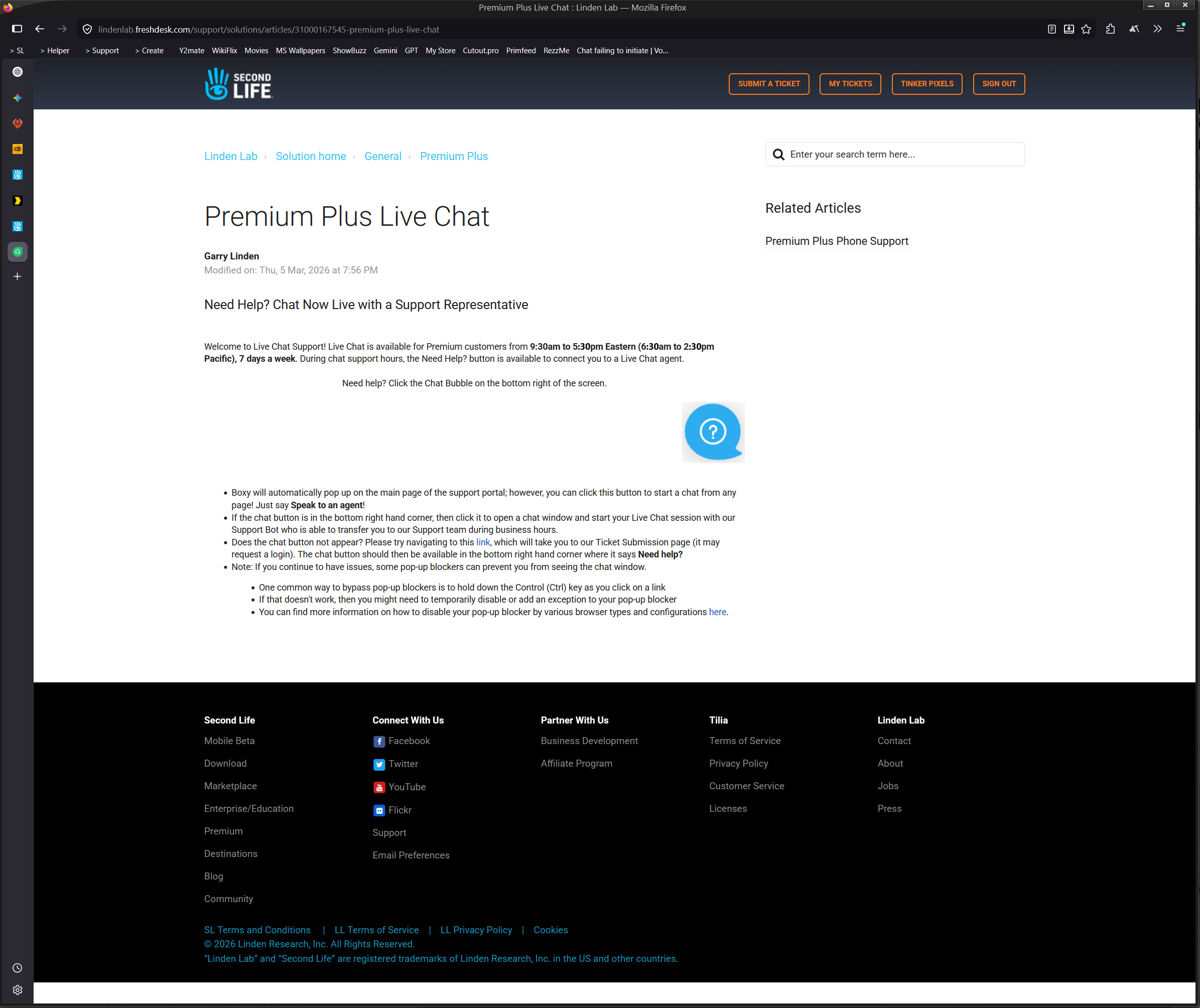 Are you still seeing issue with support.secondlife.com chat not showing up for premium+?